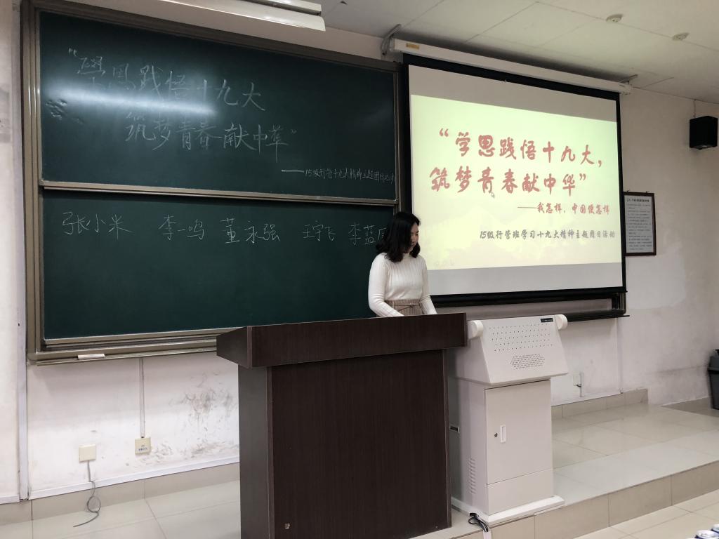 2017年11月17日10时,15级行管班团支部在渭水校区明远1212教室开展了“学思践悟十九大,筑梦青春献中华——我怎样,中国便怎样 ”主题团日活动。班主任尚子娟老师与行管班全体同学参与了此次活动。