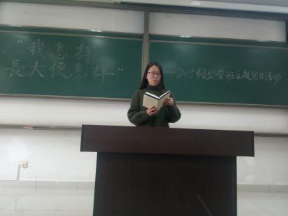 11月15日上午,2015级公管班于明远教学楼1104教室开展了朗诵活动,公管班的团日活动如火如荼地进行着,大家积极的上台发言,声情并茂的朗读对自己有深重影响力的重要文章、书籍等内容,并向大家分享属于自己的独特故事。